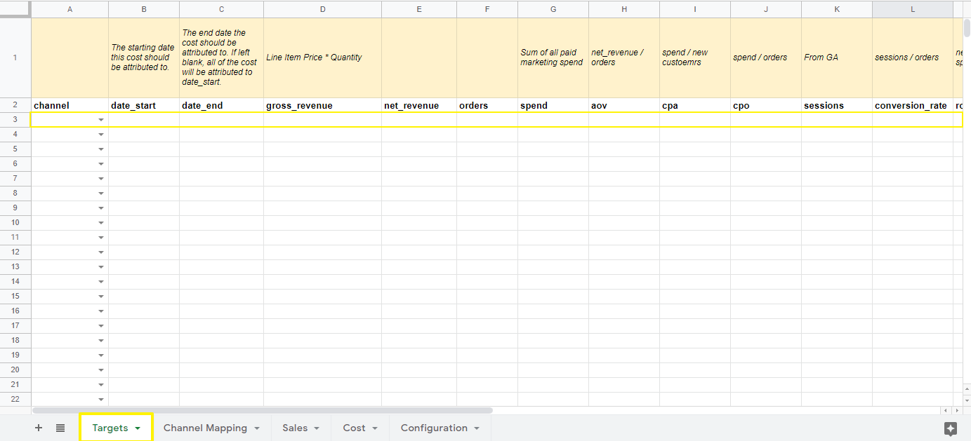 Open your SourceMedium Configuration Sheet: