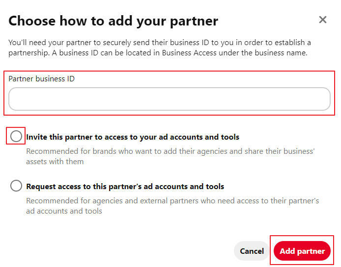 - If you’re having trouble adding SourceMedium as a partner, reference Pinterest’s Manage Partners help article
