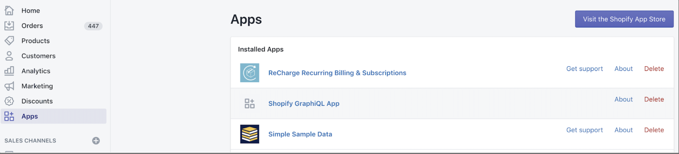 Log into your Shopify account, select Apps, and then click on your ReCharge app