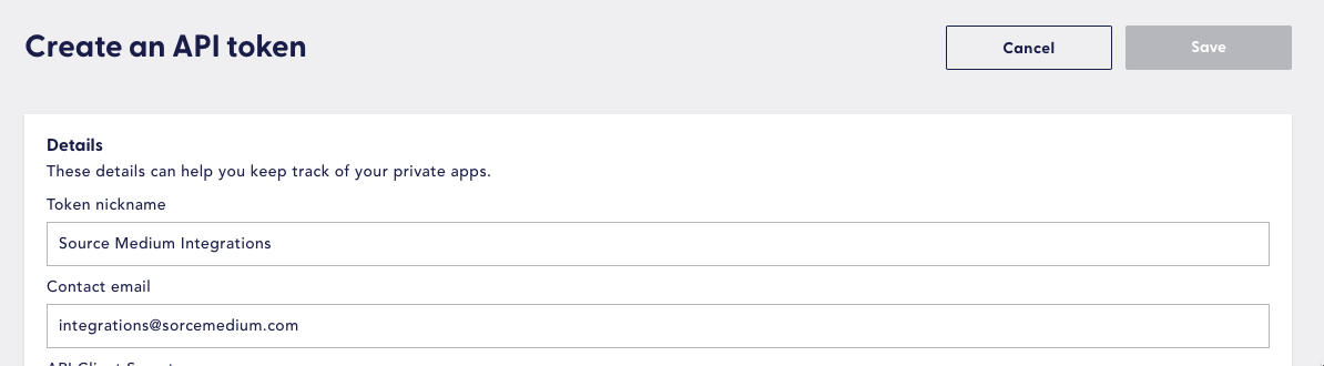 - Provide SourceMedium with your token Name and API key on your onboarding form or email the information to integrations@sourcemedium.com