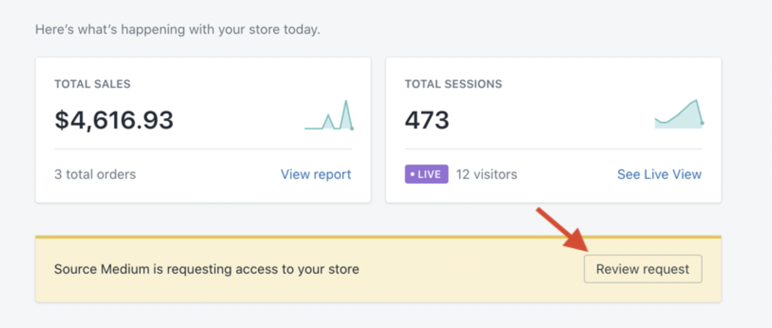 The email will be titled: “View request by SourceMedium to access…” FROM: mailer@shopify.com