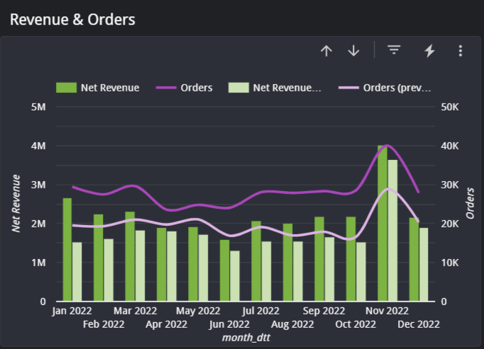Analyze trends over time to identify seasonal patterns. The Year over Year page is an excellent place to understand these sales trends. Some key charts: